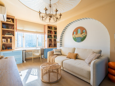 В интерьере переплетены кухня со столовой, гостиная с танцполом и местом для хранения. Весь этот функциональный микс разбавлен яркими красками и...