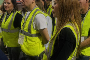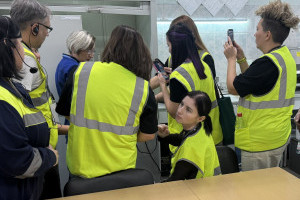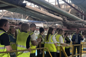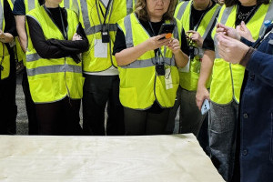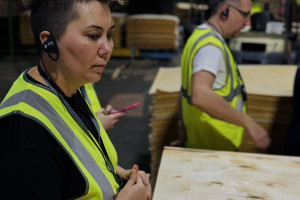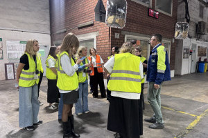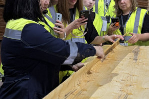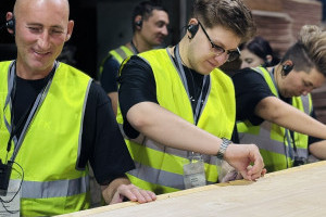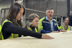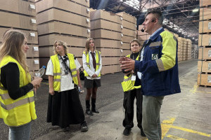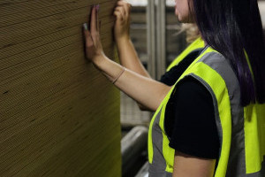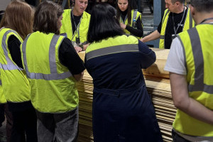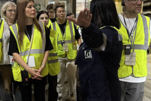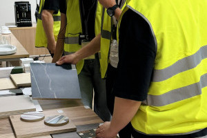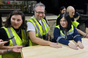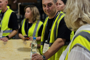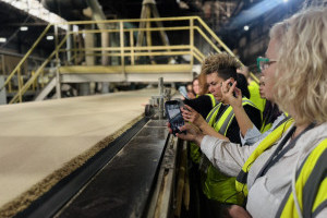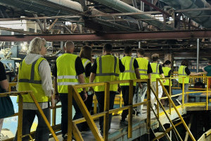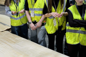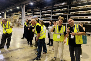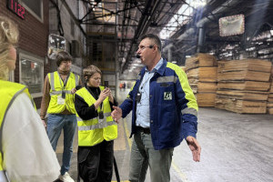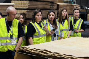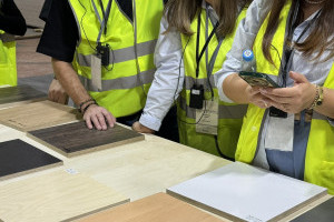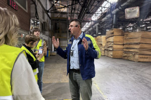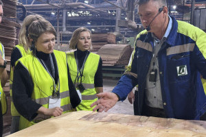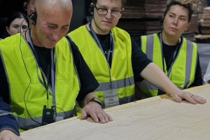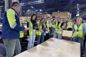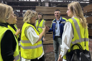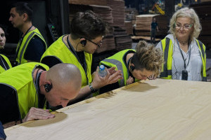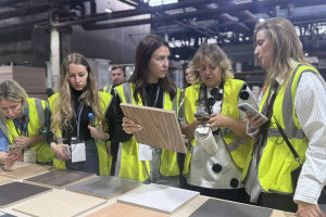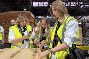 В рамках программы гости посетили производственные площадки завода, где разделились на две группы, чтобы максимально подробно познакомиться с принципами работы предприятия. Дизайнеры увидели весь путь производства продукции — от сырья до готовых плит, побывали в цехах по выпуску фанеры и ДСП, на линии ламинирования и в лабораториях контроля качества.