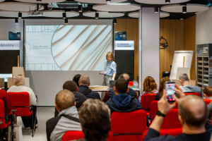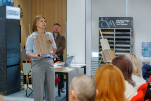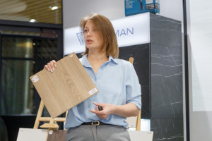 Одним из ключевых выступлений стала презентация бренд-менеджера Сыктывкарского фанерного завода Натальи Колесниковой. Она представила коллекцию FORMA от Lamarty — актуальные декоры с выразительной фактурой, отражающие современные направления в дизайне мебели и интерьеров. Дополнительно участникам показали ламинированную фанеру SyPly Design, раскрыв её функциональные свойства, эксплуатационные преимущества и потенциал применения в различных проектах.