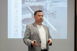 В рамках деловой программы бренд-менеджер TALISMAN Дмитрий Пегов представил современные решения для мебели, продемонстрировав, как детали и комплектующие могут существенно повысить ценность конечного продукта.