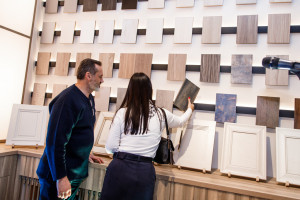 Комплексный проект Первой Плитной Компании предлагает товары для мебельного производства профессионального сегмента в сочетании с дополнительными услугами, формируя полноценную систему взаимодействия – с интегрированным местом для работы и общения. На территории шоу-рума работают профессиональные менеджеры-консультанты, которые помогают клиентам определиться с материалами, дают грамотные консультации по их сочетаниям и ориентируют по необходимому количеству.