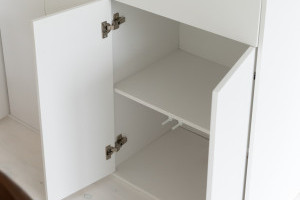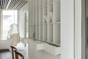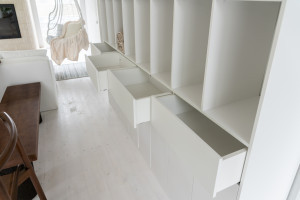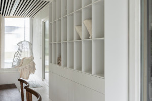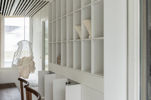 Веранда загородного дома преобразилась в гостевую зону с внушительной системой хранение, изготовленной из фанеры SyPly PRIMER.