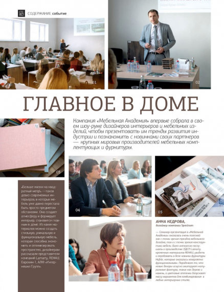 Компания «Мебельная Академия» впервые собрала в своем шоу-руме дизайнеров интерьеров и мебельных изделий, чтобы презентовать им тренды развития индустрии и познакомить с новинками своих партнеров — крупных мировых производителей мебельных комплектующих и фурнитуры.