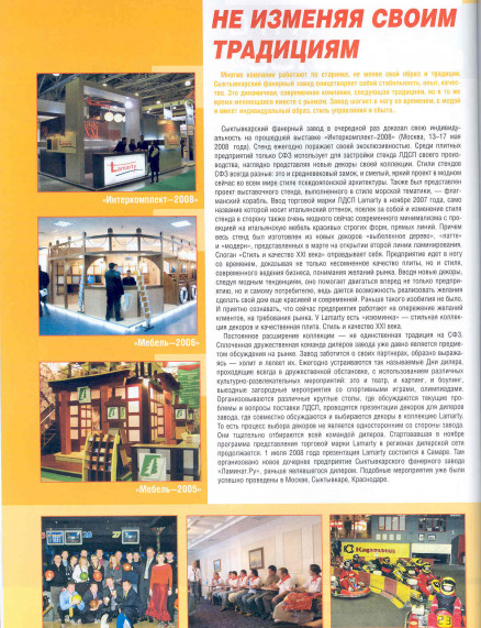 Многие компании работают по старинке, не меняя свой образ и традиции. Сыктывкарский фанерный завод олицетворяет собой стабильность, опыт, качество. Это динамичная, современная компания, следующая традициям, но в то же время меняющаяяся вместе с рынком. Завод шагает в ногу со временем, с модой и имеет индивидуальный образ, стиль управления и сбыта...