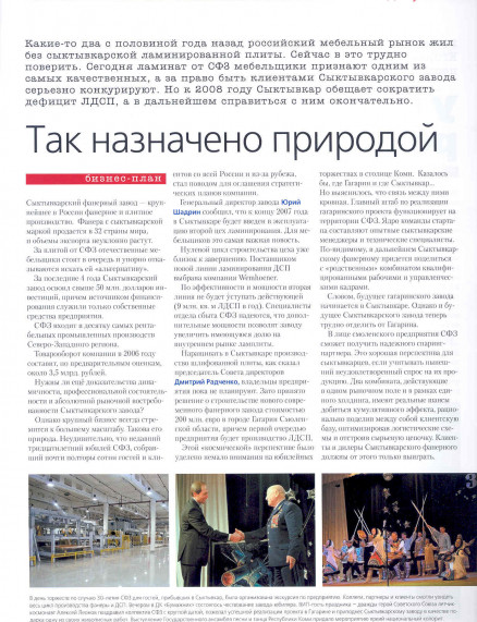 Какие-то два с половиной года назад российский мебельный рынок жил без сыктывкарской ламинированной плиты. Сейчас в это трудно поверить. Сегодня ламинат от СФЗ мебельщики признают одним из самых качественных, а за право быть клиентами Сыктывкарского завода се6рьезно конкурируют. Но к 2008 году Сыктывкар обещает сократить дефицит ЛДСП, а в дальнейшим справиться с ним окончательно.