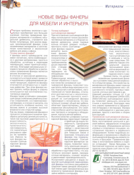 Сегодня проблемы экологии и здоровья приобретают все большее значение, по этому применение природных материалов и особенно натуральной древесины становится все более популярным. Для многих ведущих производителей фанера стала незаменимым материалом в изготовлении качественной и экологичной мебели для дома и офиса.